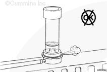 安裝濾清器座和濾清器(如果拆下)。擰緊螺栓。扭矩值: 54 n.m [40 ft-lb]將閥門旋轉(zhuǎn)到“ON”(打開)位置。