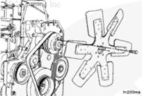 拆下風(fēng)扇驅(qū)動皮帶。參考步驟 008-002-002。拆卸風(fēng)扇和風(fēng)扇離合器總成。