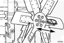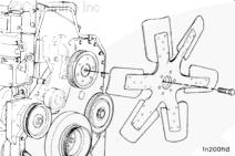 安裝新的風(fēng)扇輪轂和 4 顆螺栓。扭矩值: 47 n.m [35 ft-lb]