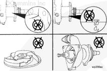 注: 漏水孔處的條痕或化學(xué)集聚物不能作為更換水泵的依據(jù)。如果觀察到冷卻液或機(jī)油持續(xù)流出,則更換或大修水泵。