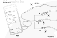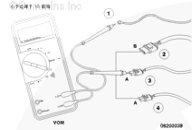 將“VOM”(電壓電阻表)表筆放在觸針 A 和觸針 B 中。