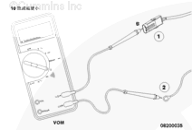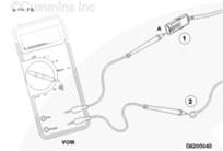 檢查線束中有無短路。電阻 下面的電阻必須大于 100K 歐姆:風(fēng)扇離合器接頭 (1) 的觸針 A 與接地端子 (2) 之間